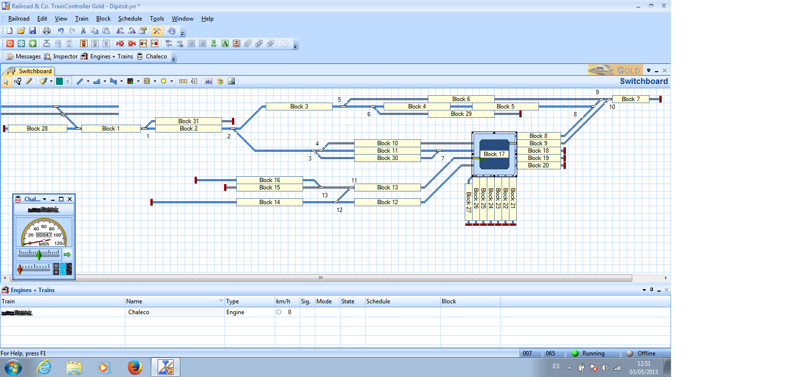 - Led blau - La via no té corrent: L'operador ha de donar corrent a la via, dons en cas contrari no podrà fer la maniobra per estacionar la locomotora. Això el portarà a una de les dues indicacions restants.