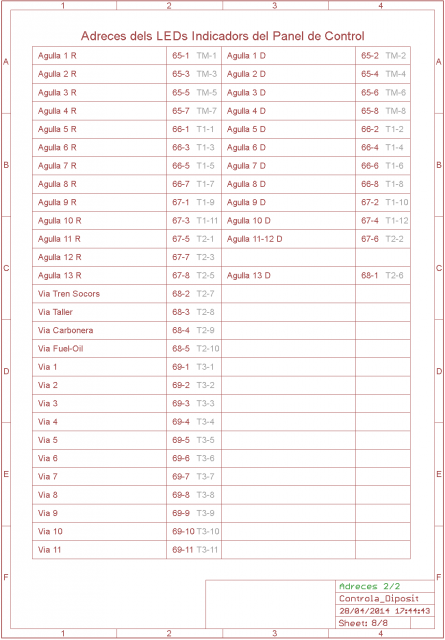He documentat les adreces que he fet servir a un parell de fulls (adreces de commutadors i adreces de LEDs). Pren nota si us plau dels canvis que he hagut de fer.