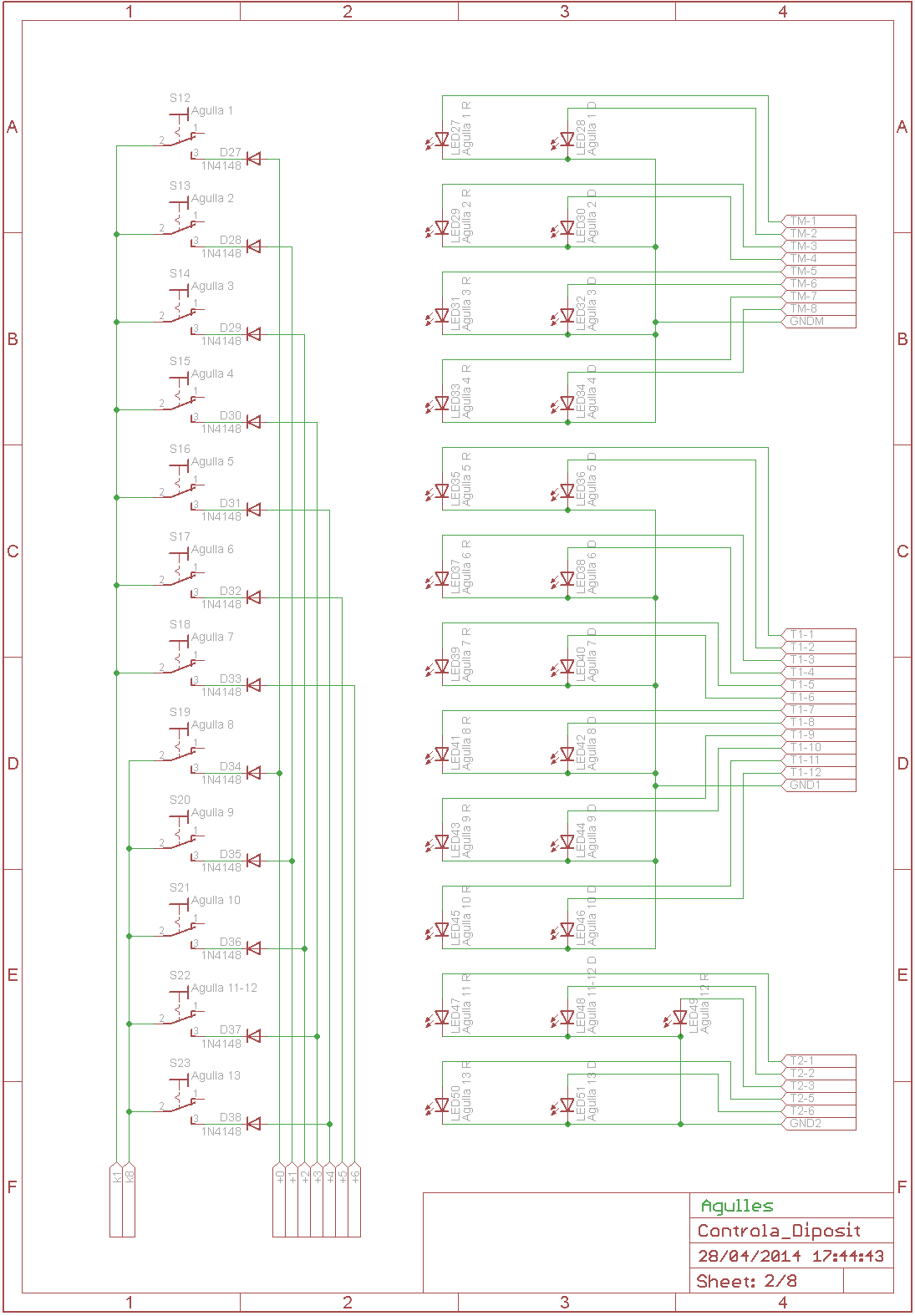Pel que fa a les agulles i LEDs de posició d'agulla, l'esquema és el següent: