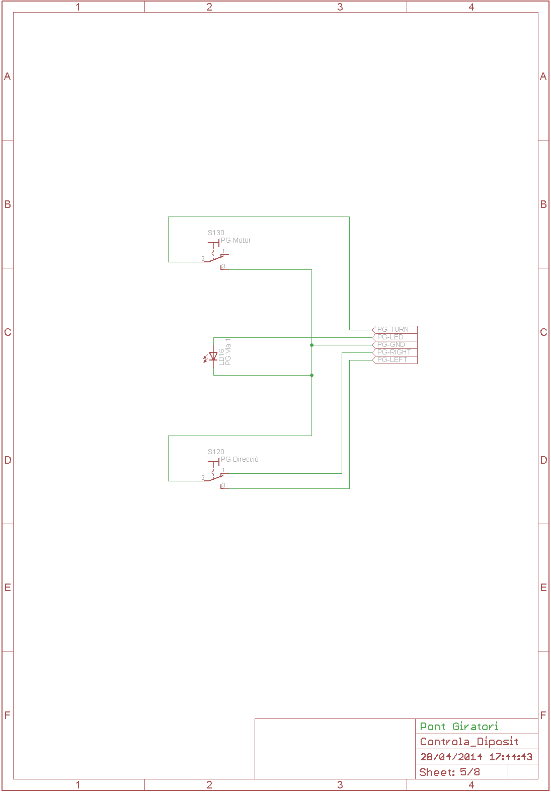 A més, l'espai que ocupaven abans els comandaments del pont (ara buit) l'he utilitzat per incloure uns comandaments per a la gestió del pas a nivell. Dos interruptors tenen per funció: "Automàtic", per a determinar, o no, el funcionament automàtic del pas a nivell segons el pas dels trens. "Manual", per comandar manualment el pas a nivell (obert/tancat) quan el comandament anterior no estigui en automàtic. A més un parell de leds indicaran: A l'esquerra un led verd (p.e.) encès quan el P.N. estigui en automàtic i apagat quan estigui en manual. A la dreta un led bicolor que indiqui en verd que el P.N. està obert i en vermell que està tancat.
