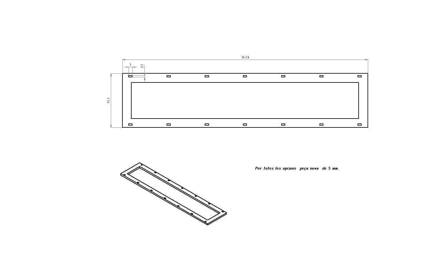 La base es fa nova, amb els forats per ajuntar les columnes i es passa a 5 mm. per enrasar amb el suro es una mica mes ample que el original per també enrasar la paret lateral i ser tot un bloc.