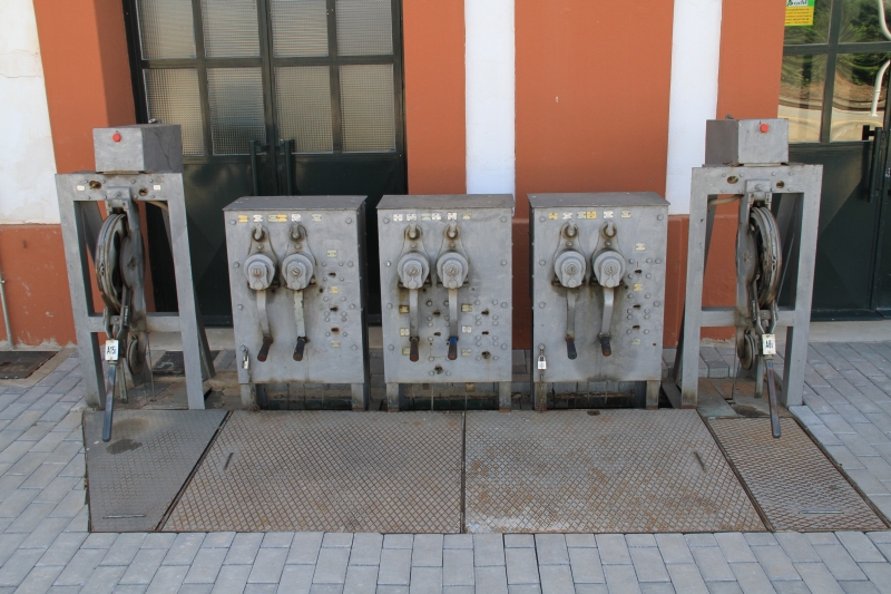 A banda, per al comandament de la senyal de sortida del dipòsit una palanca d'arc antiga (possiblement originaria del dipòsit al segle XIX) també amb cadenat amb clau Bouré: