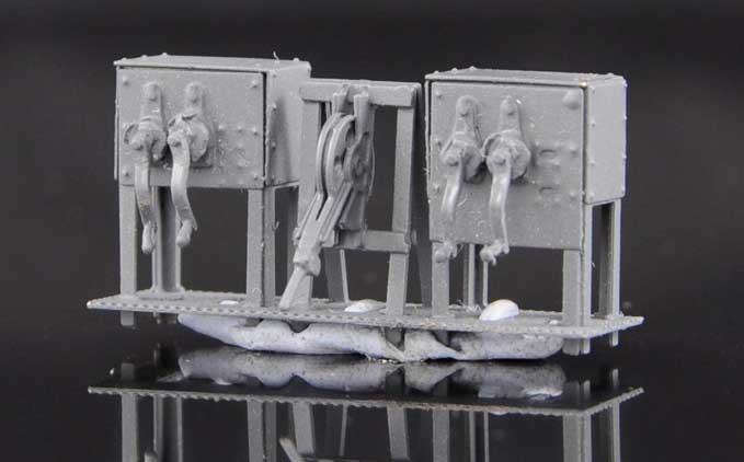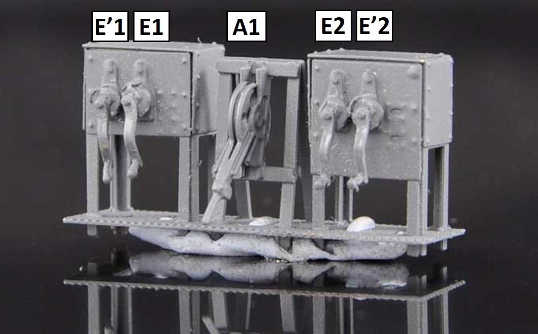 Vist això, el conjunt que reprodueix "Rafael Sánchez Modelismo" disposa de una única palanca d'agulla i de dos blocs de torns, la qual cosa ens fa pensar que es correspon a un enclavament d'una bifurcació: