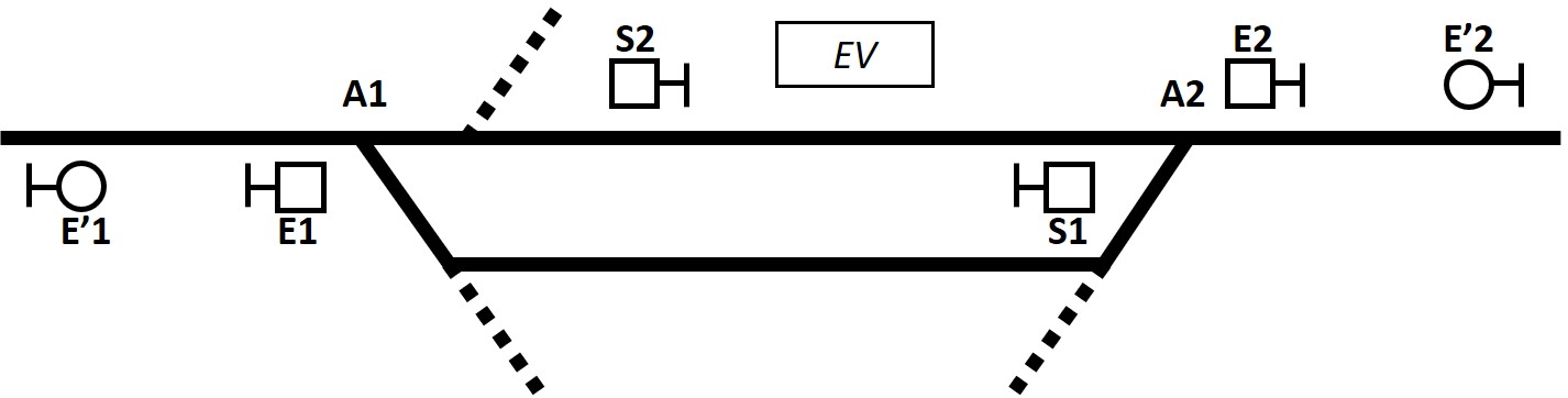 Un conjunt d'enclavament Siemens amb claus Bouré per a gestionar tant les senyals d'accés a l'enclavament, i de les seves senyals avançades, com els aparells de via. Aquest elements podria tenir una configuració com la següent: