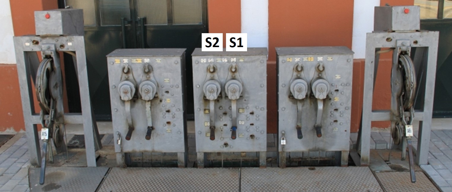 Aquesta característica ens ha fet pensar si cal una segona torre d'enclavaments, però aquesta vegada, per diversitat, hem pensat que fora millor que l'enclavament es controli des de l'oficina d'entrada amb transmissió funicular. El control dels elements de l'enclavament, agulles i senyals, pot fer-se mitjançant un enclavament Siemens amb claus Bouré similar al de la fotografia: