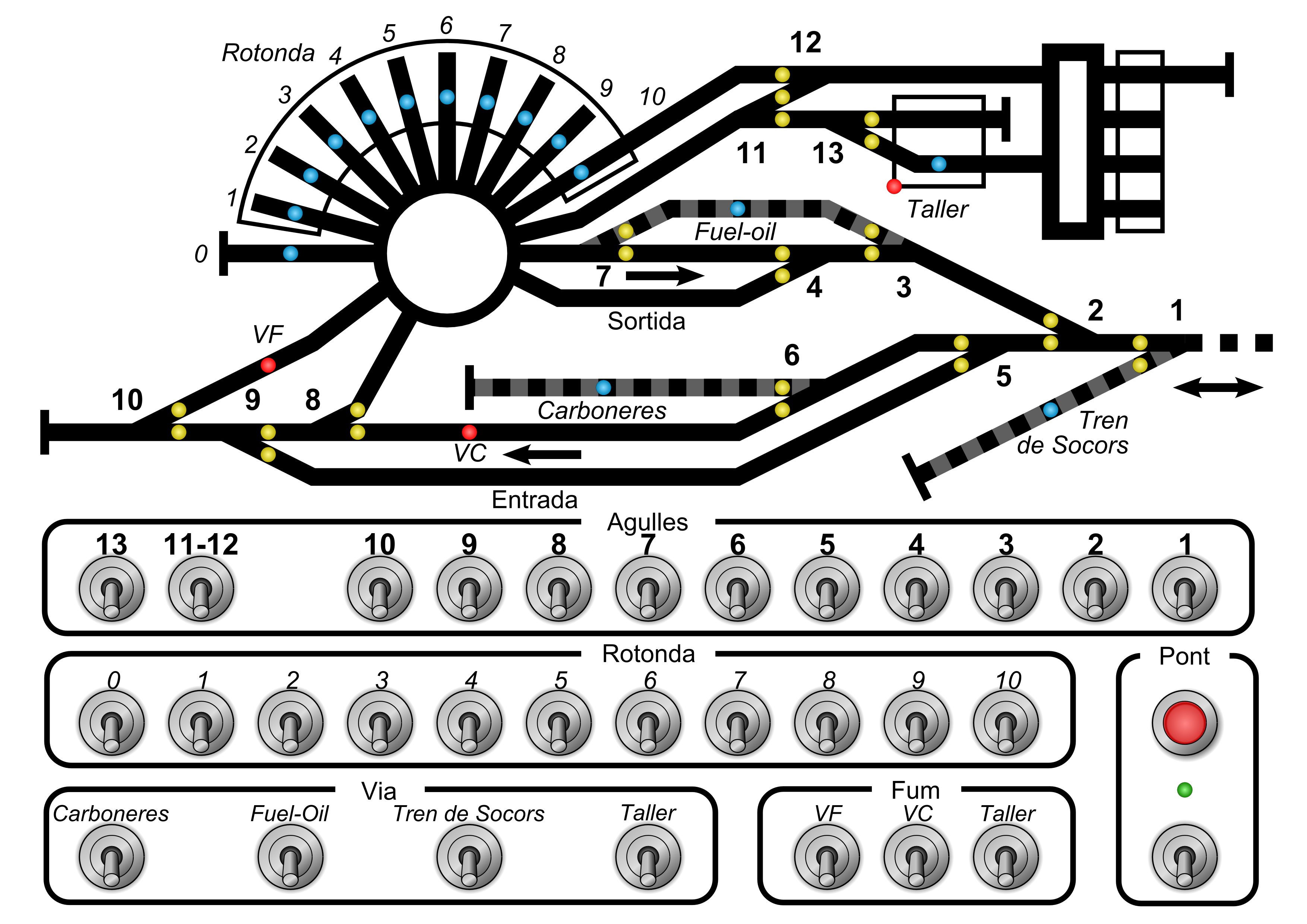 Cal assenyalar que aquest epígraf de control del pont giratori podria situar-se també a l'esquerra de la controla desplaçant els control de vies i fumígens cap a la dreta. Això pot ser a gust del consumidor.