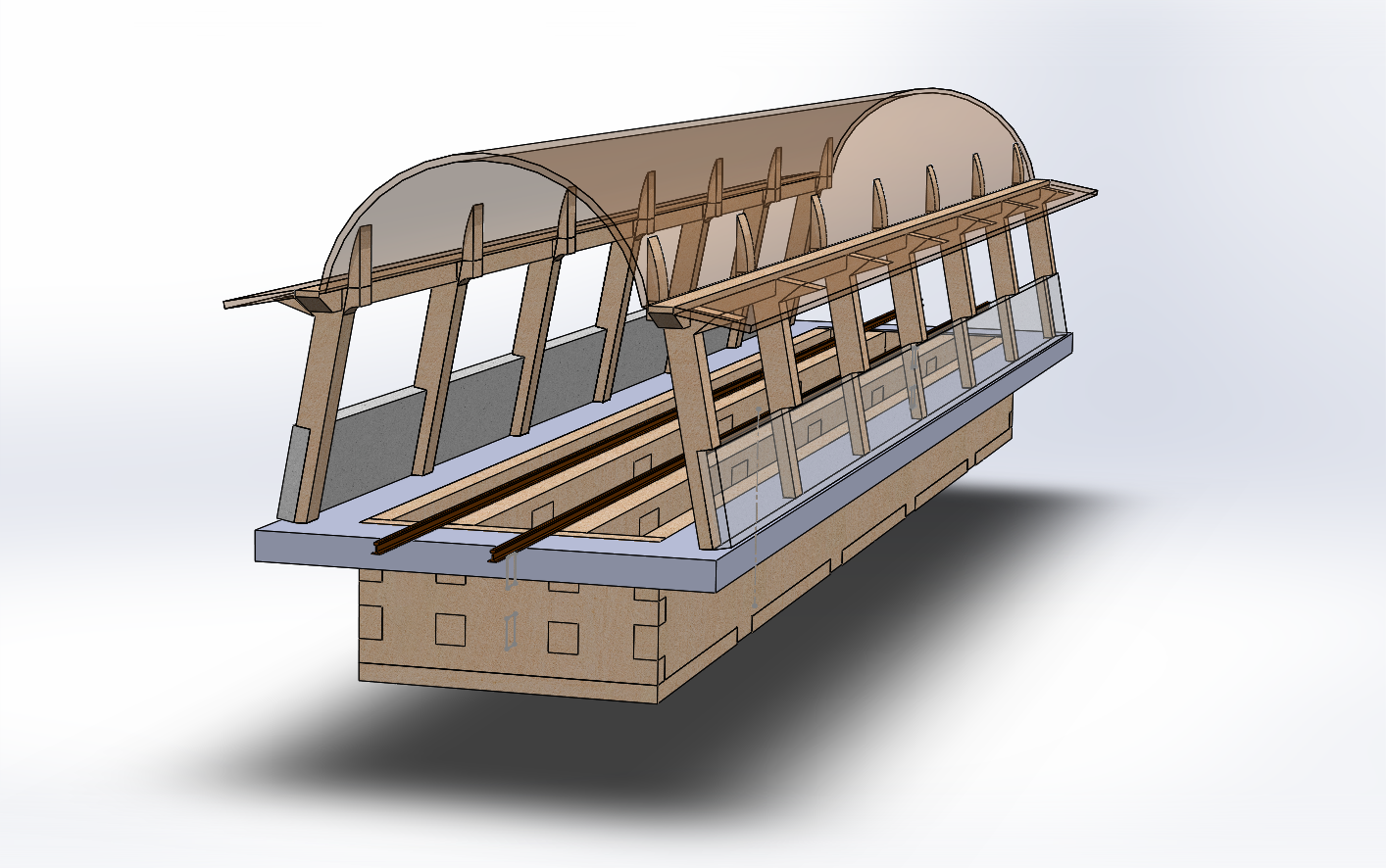 Es el següent, un cop muntat tot, resulta que no te estabilitat, per dos motius, el primer que no te peus de fixació i segona que recau tota l'estabilitat al sostre en corba. (malament).