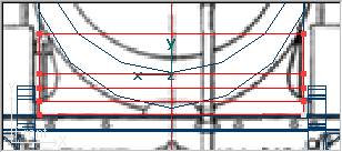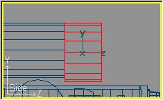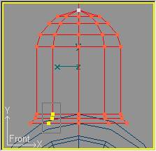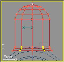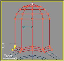 Como de costumbre, en la vista lateral pasamos a modo secciones con Mode » Cross Section (o pulsando la tecla F9) y procederemos a recorrer las secciones (tecla N) para moverlas, en el eje Y solamente, de forma que se sitúen en los puntos de cambio de curvatura del domo original. Quiero aprovechar para recordar que el "modo Cross Section" únicamente está disponible para cilindros, y no para cubos, razón por la cual al trabajar con cubos usamos el "modo de puntos". Por contra el modo de puntos si está disponible para cilindros pero usamos el presente por la facilidad que nos permite recorrer las secciones sin tener que seleccionarlas con el ratón.
