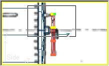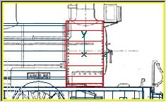 Para realizar el hogar, crearemos un cubo de dimensiones: Width=1.46, Height=0.96, Depth=1.88. En la vista lateral, moveremos la pieza hasta su colocación correcta ajustada, por la parte superior, con el centro de la caldera, y por la parte trasera con la cara posterior de la caldera. Si es necesario trabajaremos en la vista lateral expandida (pulsar con el botón derecho del ratón sobre la vista lateral y seleccionar Expanded View) y ampliando el zoom al máximo (tecla I). Editaremos las propiedades de la pieza con Edit » Part Properties (o bien pulsando la tecla F2) verificando la posición del eje en X=0, Y=1.782, Z=-2.5.