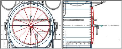 Crearemos un cilindro pulsando Part » Add » Tube (o el icono de New Tube en la paleta de Partes), al cual le daremos nombre PuertaCH y las dimensiones: Radius=0.62, Points=16, Length=0.08, Sections=2 y marcaremos que el eje del cilindro se estructura a lo largo del eje Z. También comprobaremos que el cilindro no tenga cerradas las caras posterior y anterior desmarcando si es necesario Close Left/Bottom/Front y Close Rigth/Top/Back. Moveremos la pieza en la vista lateral hasta su posición ajustada al frente de la caja de humos, y centrada respecto al eje de la caldera (X=0, Y=2.26). Para verificar su posición correcta, editaremos las propiedades de la pieza con Edit » Part Properties (o bien pulsando la tecla F2) verificando la posición del eje en X=0, Y=2.26, Z=2.878.