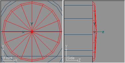 Ahora procederemos a la deformación de la pieza para darles la forma ovalada en el eje Y, con Transform » Scale Mode (o pulsando la tecla S) y restringiendo la transformación para el eje X con Transform » Constrain X (o pulsando la tecla X) y para el eje Z con Transform » Constrain Z (o pulsando la tecla Z), y en la vista lateral, y con el Backdrop activado, arrastraremos con el ratón para aumentar el tamaño de la pieza, solamente en altura, hasta el tamaño que nos muestra el Backdrop (enrasado con la base de la chimenea):