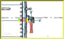 Estas coordenadas se obtienen desde TSM sencillamente colocando el cursor en la vista lateral sobre la boca de la chimenea. En el centro de la barra de estado, al pie de la ventana, TSM nos da las coordenadas del punto donde está situado el cursor.