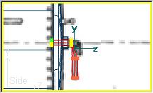 El soporte de conexión entre la válvula y la caldera lo realizaremos una vez más con un cilindro pulsando Part » Add » Tube (o el icono de New Tube en la paleta de Partes), al cual le daremos nombre ValvulaSop.1 y las dimensiones: Radius=0.05, Points=6, Length=0.05, Sections=1 y marcaremos que el eje del cilindro se estructura a lo largo del eje X. También comprobaremos que el cilindro tenga cerradas las caras superior e inferior marcando si es necesario Close Left/Bottom/Front y Close Rigth/Top/Back. Moveremos la pieza en la vista lateral hasta su posición sobre el Backdrop. Para verificar su posición correcta, editaremos las propiedades de la pieza con Edit » Part Properties (o bien pulsando la tecla F2) verificando la posición del eje en X=0.73, Y=2.26, Z=0.