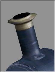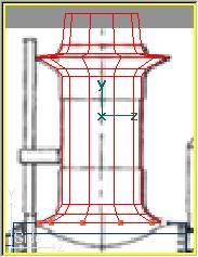 A continuación seleccionaremos la sección central (tecla P) y le reduciremos ligeramente su diámetro, así como también la desplazaremos un poco hacia adelante para ajustar la forma lo más posible al Backdrop. El resultado final será semejante a éste (se ha suprimido el Backdrop para mejorar la vista de la pieza):