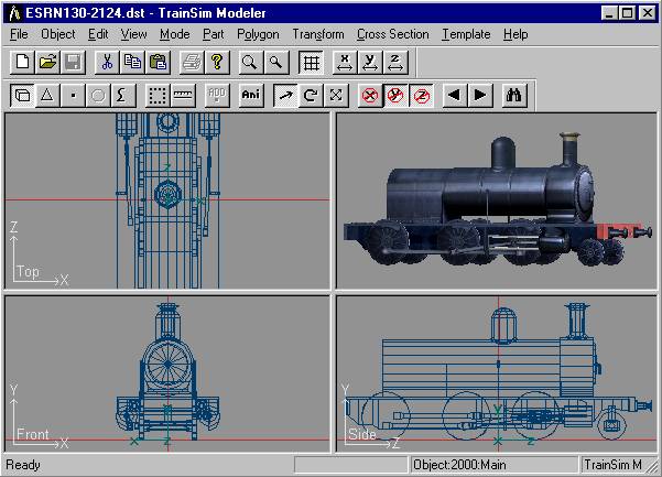 Si ejecutamos MSTS y comprobamos el modelo, observaremos que el humo de la chimenea, así como los escapes de vapor de las purgas de los cilindros, no surgen de los puntos adecuados de nuestra locomotora. Esto es así pues hemos usado un archivo .eng copiado de otra locomotora. Si queremos corregir estos efectos, deberemos editar el archivo RENFE130-2124.ENG con WordPad y modificar las siguientes líneas: