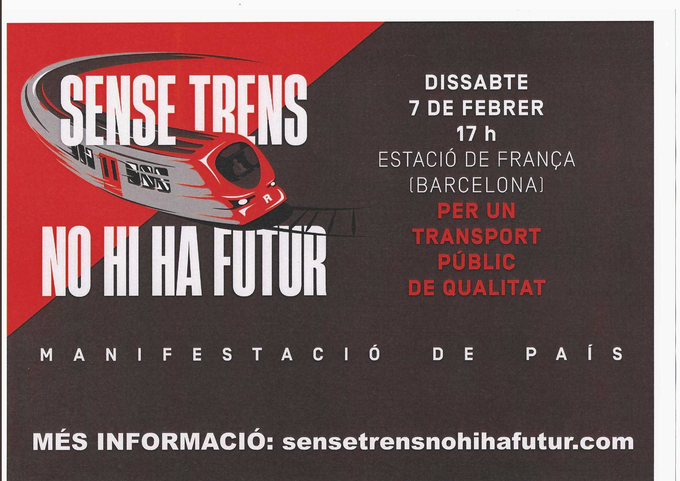 El proper dissabte 7 de febrer a las 17:00 h , manifestació de país, en favor de una xarxa ferroviària en condicions a les nostres poblacions